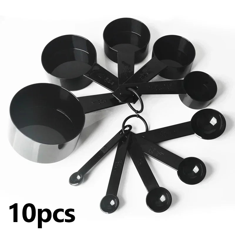 Complete set of measuring spoons and cups for precise baking and cooking. Multipurpose and durable kitchen essentials.
